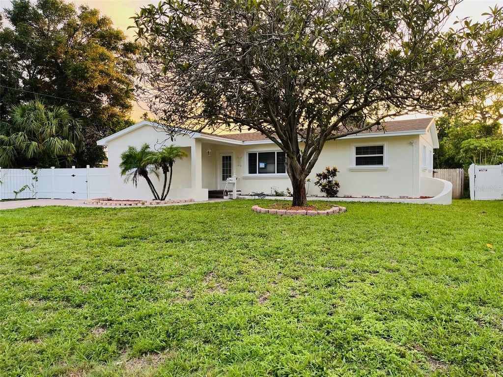 Property offers a brand new roof installed June 2025 with hurricane straps for enhanced protection, offering peace of mind and potential insurance savings. Roof warranty transfers with the home. This 3/2 well-maintained Block home split floor plan sits tucked away from the hustle and bustle in the Tyrone area in West St. Pete. Upon entering the home you will appreciate the warmth of the original hardwood floors. The large kitchen is the heart of the home with granite counter tops, beautifully accented tiled backsplash and lots of cabinets, as well as plenty of counter space. Sliding glass doors open to the back deck The primary bedroom features its own private bathroom with shower. On the other side of the home the 2 bedrooms share a tub bath. The west room has French doors that open to the back deck. The fully fenced backyard is an open canvas for the creative landscaper. Plenty of room for a pool. Brick pavers off wood deck, the perfect outdoor space for entertaining. Shed included. 2 Blocks from Home Depot, Ross, TJ Maxx, Burlington Located just minutes from the beautiful Gulf Coast beaches, Tyrone shopping plaza(s), Downtown St. Pete, and local restaurants and day activities, this home offers the best of both relaxation and entertainment. Tampa International Airport is also a short drive away. Minutes from the Pinellas bike trail. Home newly classified to be in flood zone AE **NO WATER INTRUSION OR HOME DAMAGE FROM HELENE OR MILTON** Property is not currently homesteaded. Owner never occupied.